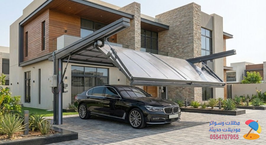 بالإضافة إلى ذلك نحن نوفر لعملائنا تشكيلة واسعة من مظلات سيارات متحركة تتميز بمرونة عالية في الاستخدام وقدرة فائقة على التكيف مع المساحات المختلفة سواء في الفلل الخاصة أو المواقف التجارية نحن ندرك أن امتلاك مظلات سيارات كهربية يتطلب دقة في التنفيذ العالية لهذا السبب نحن حرصنا على أن تكون تصاميمنا عصرية مبتكرة و متطورة تدمج بين المتانة العالية وبين المظهر الأنيق الذي يليق بواجهات المباني الحديثة مع ضمان سهولة التحكم والتشغيل