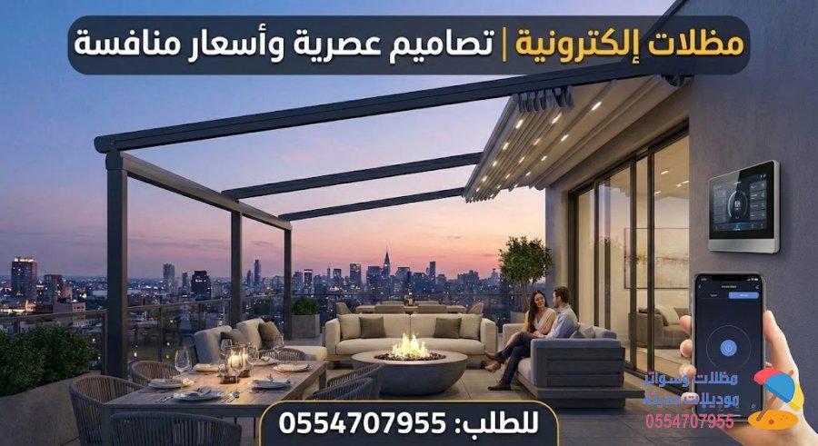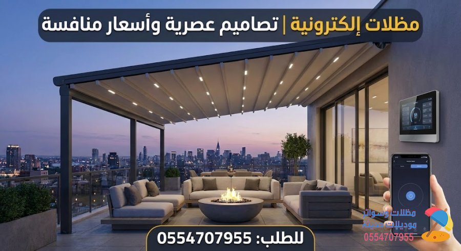 سارع بتحويل مساحتك الخارجية إلى واحة ذكية مع مؤسسة "مظلات وسواتر" اتصل بنا الآن على 0554707955 واحصل على أقوى عروض المظلات الإلكترونية بأعلى معايير الجودة وأفضل الأسعار المنافسة.